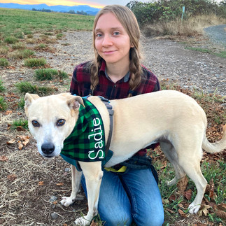 Jenn had rescued Sadie from Heartland Humane in 2015, and had no information about her past other than that she had been brought up to Corvallis from a shelter in San Diego, and that she absolutely hated a lot of noise and situations with too many strangers. "She gets overstimulated and becomes very reactive," Jenn explains.